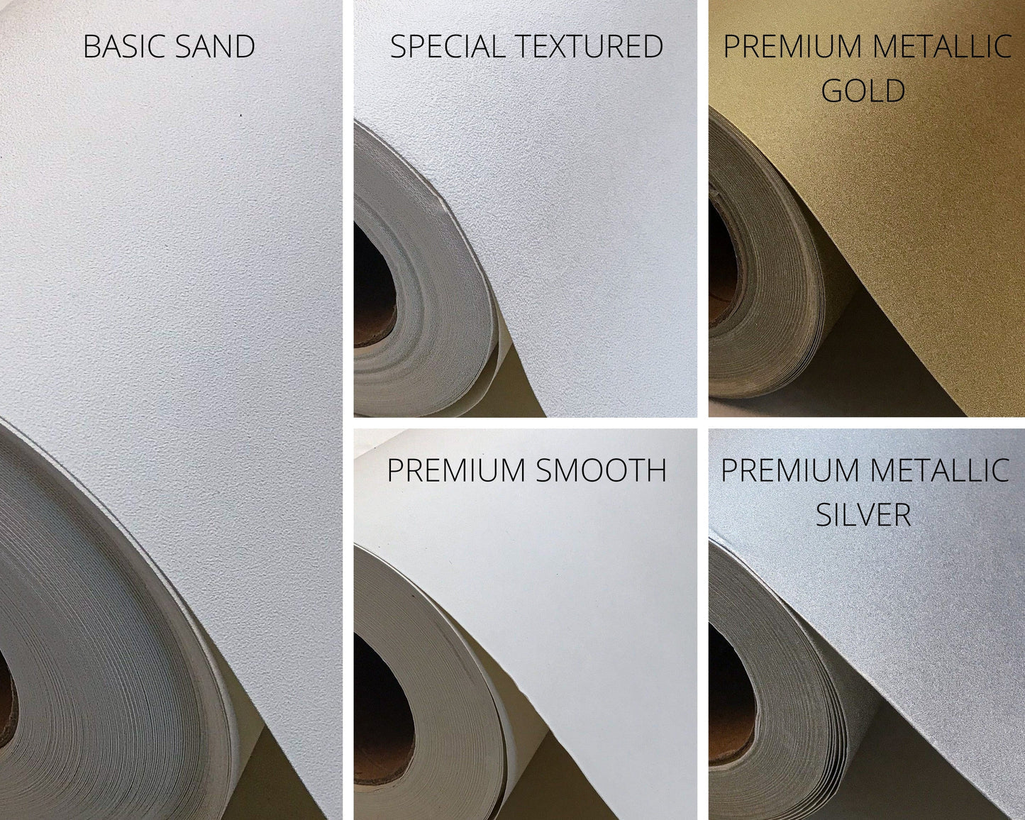 Choose among Basic Sand, Special textured wallpaper, metallic gold or metallic silver
